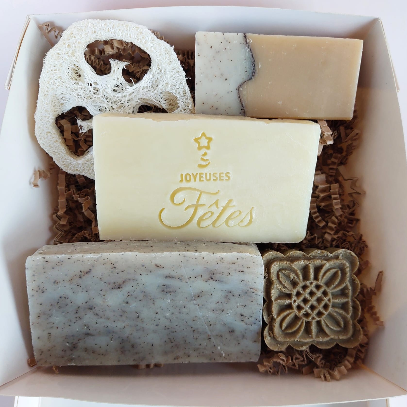 Offrez (ou offrez-vous !) un moment de douceur avec notre Coffret cadeau Noël savon estampillé Joyeuses Fêtes.
