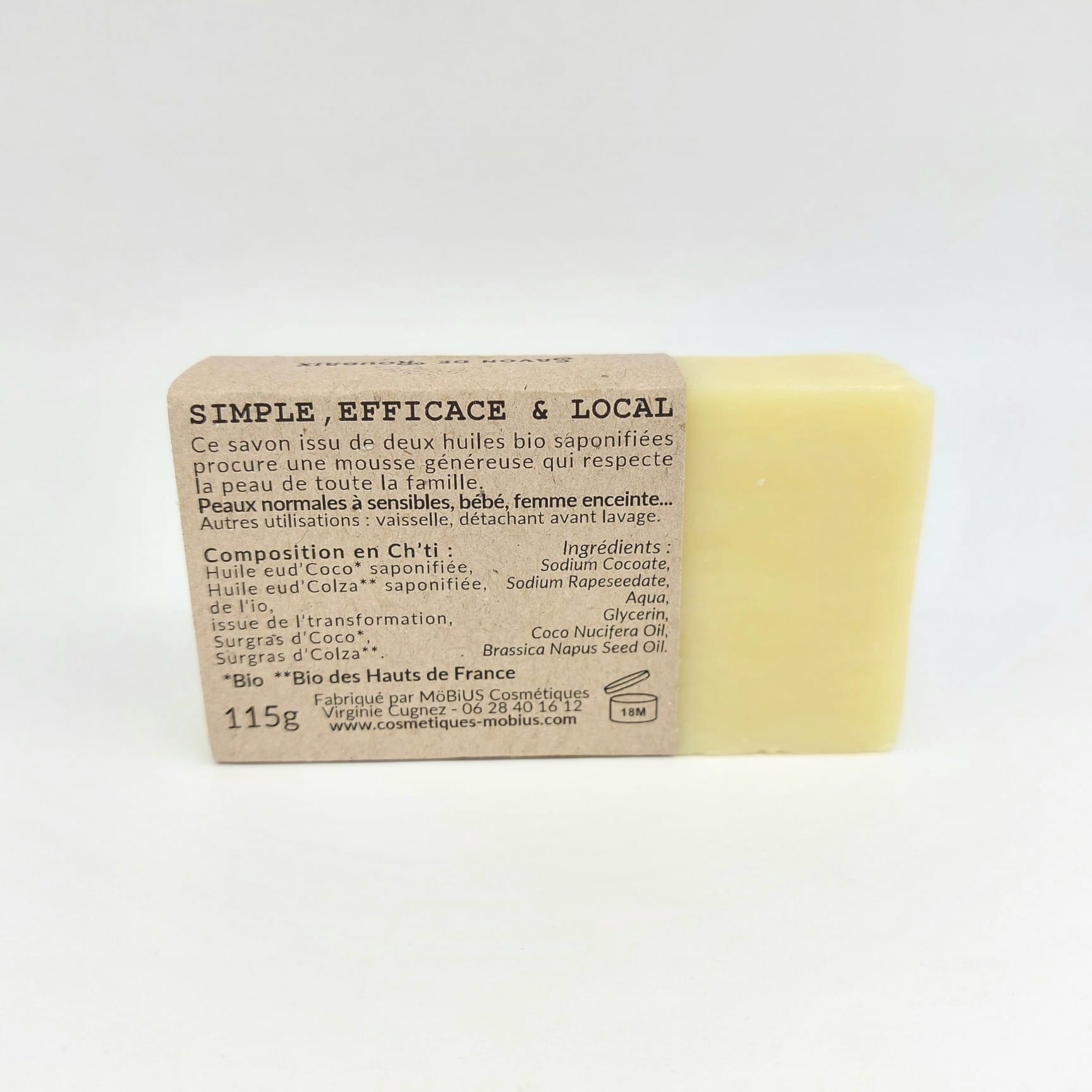 Saponifié à partir de 2 huiles Bio que nous sélectionnons avec exigence. Résultat : une mousse généreuse, un soin doux, et une peau choyée naturellement. Aucun ingrédient superflu, aucune promesse creuse : juste une formule simple, locale et efficace – comme on les aime.