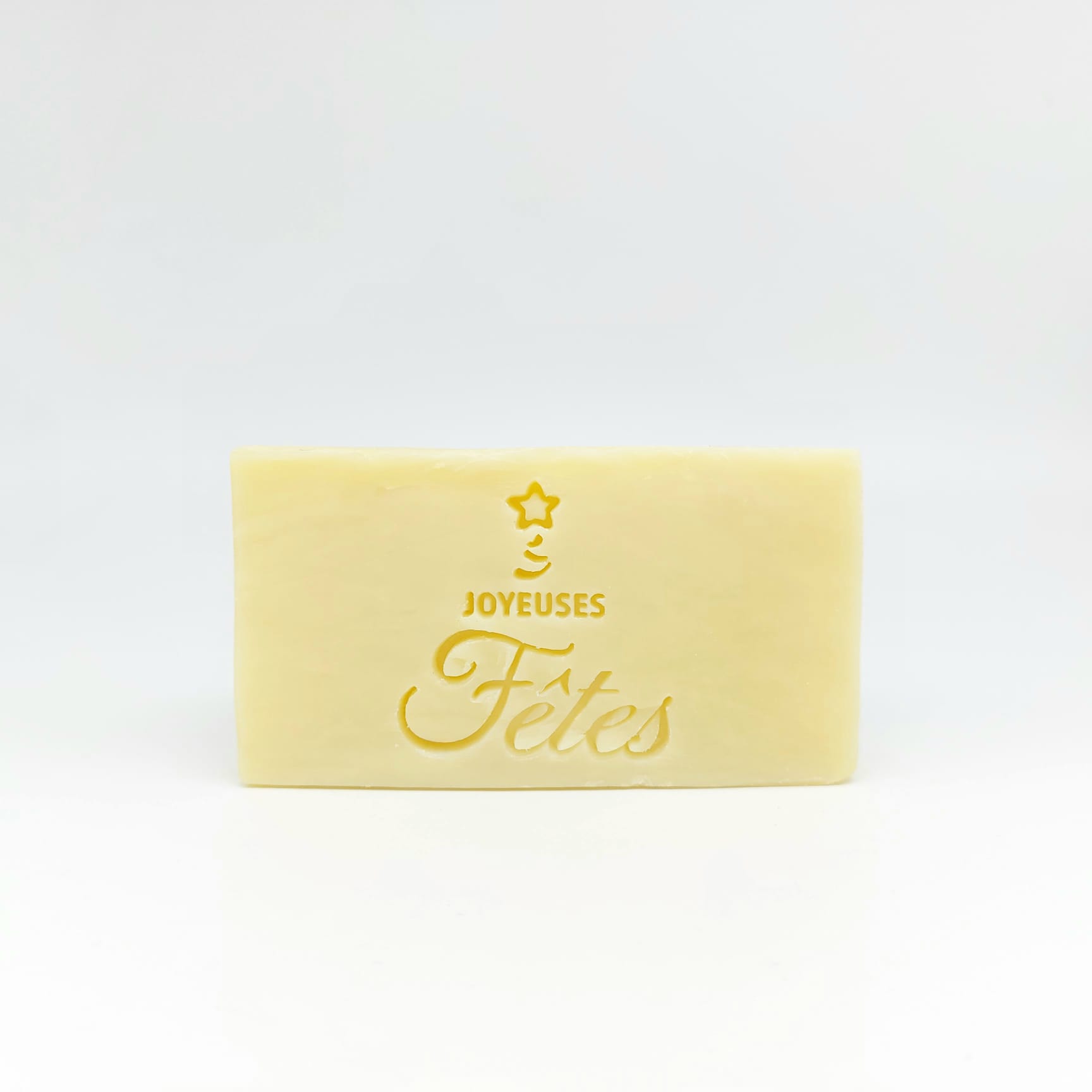 Notre Savon Cadeau estampillé “Joyeuses Fêtes” – L’Authentique est pensé pour ceux qui aiment offrir un présent utile, naturel et fabriqué avec soin. Coulé, découpé et estampillé à la main dans notre atelier des Hauts-de-France, il réunit tout ce que l’on aime : simplicité, douceur et authenticité. Un petit bout de fête à glisser dans toutes les mains.